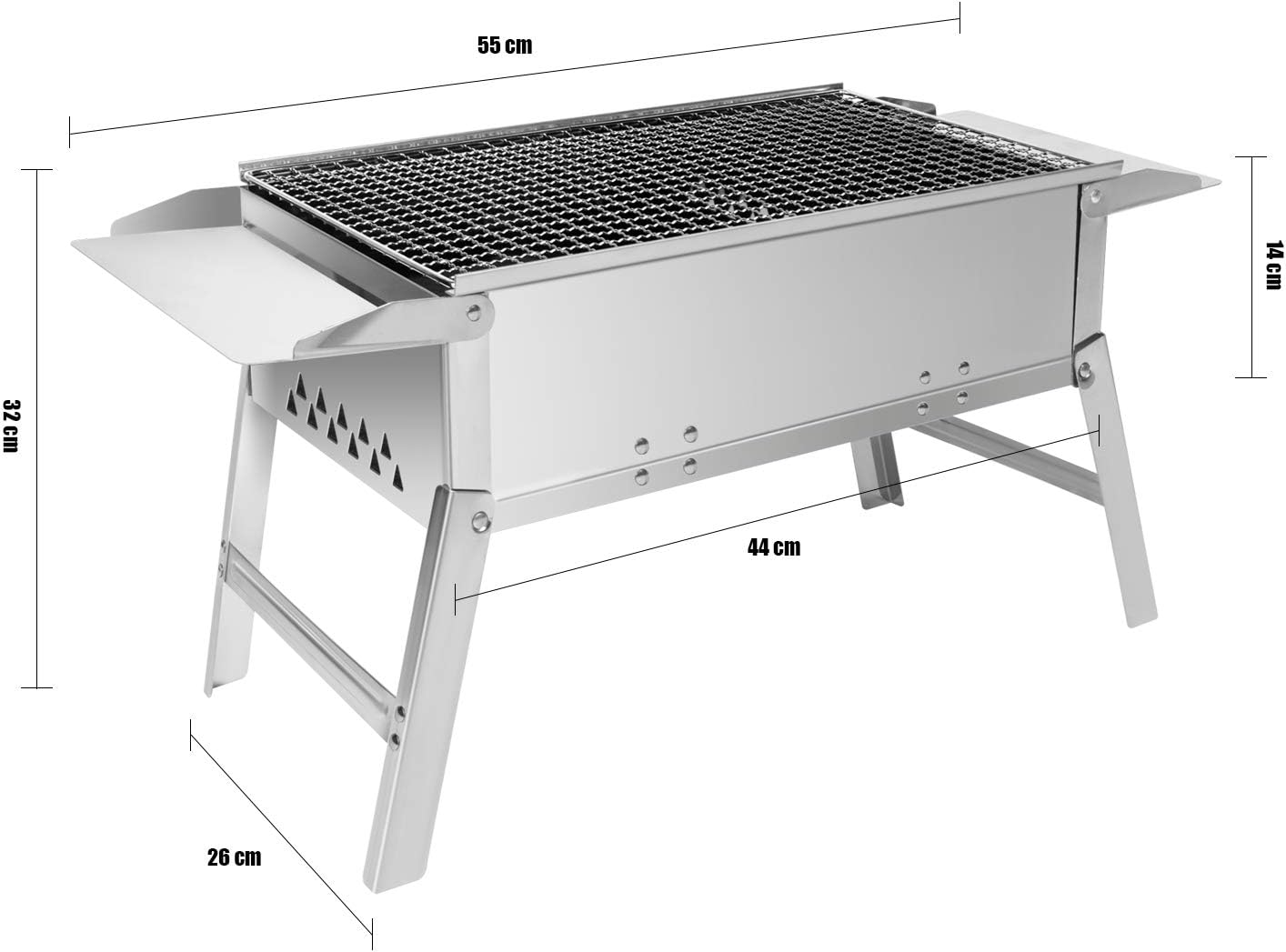 Üç boyutlu (55 x 26 x 32 cm) boyutları, kullanım esnekliği sağlar, hem geniş bir pişirme alanı sunar hem de taşıması kolaydır. Bu, kamp gezilerinden plaj partilerine kadar her ortamda lezzetli barbeküler yapmanızı mümkün kılar.